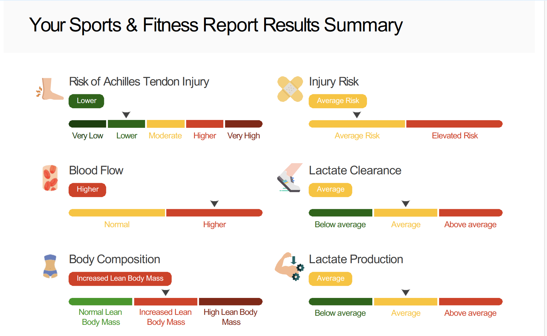 Below is a sample of the Sport & Fitness Result Report you will receive from the DNA Sport & Nutrition Analysis.